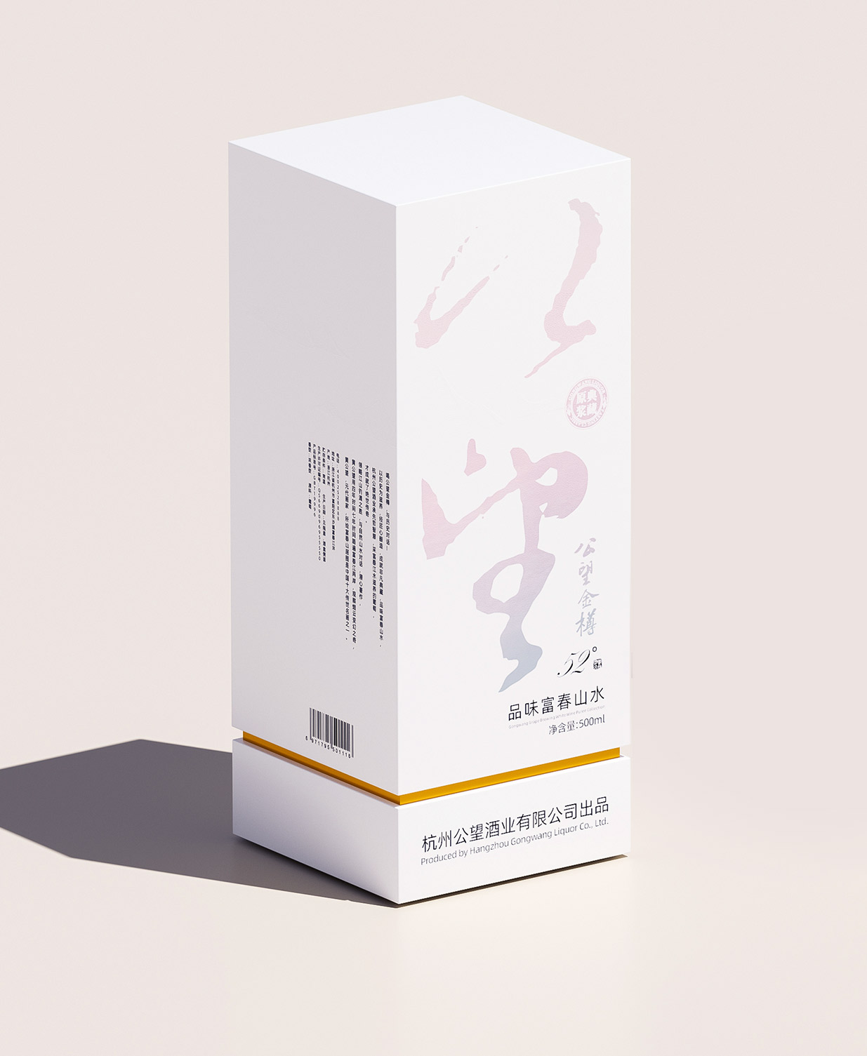 Introduction:公望白酒以其獨(dú)特的葡萄釀造工藝脫穎而出,其口感醇正且?guī)в衅咸烟赜械墓悖@種與眾不同的特質(zhì)為包裝設(shè)計(jì)提供了豐富的靈感來(lái)源。公望白酒的釀造基地位于風(fēng)景秀麗的富春江畔,這里是元代著名畫(huà)家黃公望的故里,深厚的文化底蘊(yùn)為產(chǎn)品注入了獨(dú)特的靈魂。因此,包裝設(shè)計(jì)的核心理念是借勢(shì)地域文化,將傳統(tǒng)文化與現(xiàn)代審美相結(jié)合,打造出具有獨(dú)特人文氣質(zhì)的產(chǎn)品形象。
