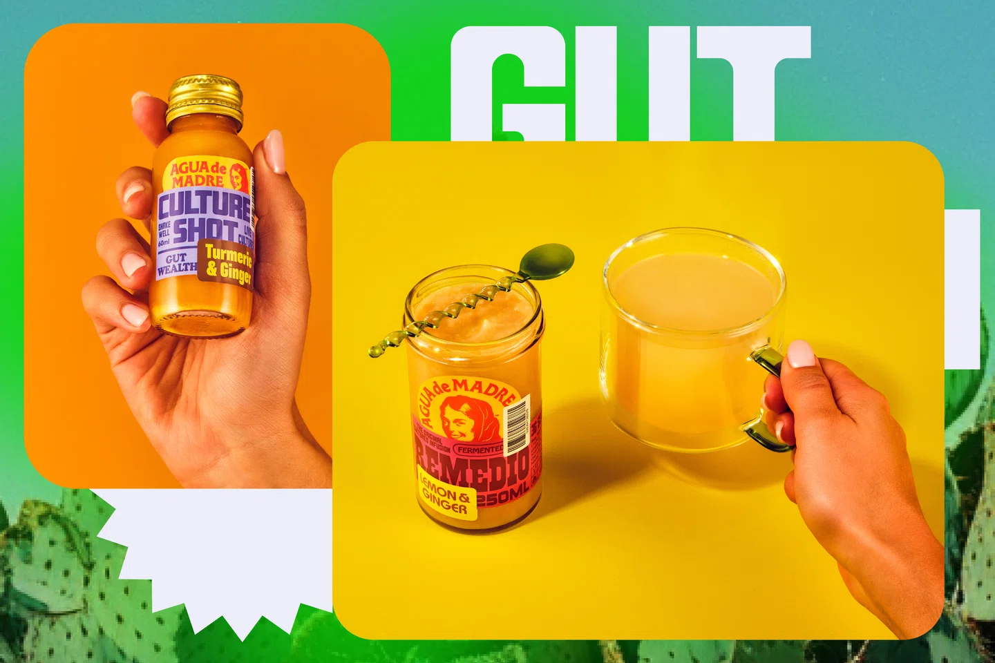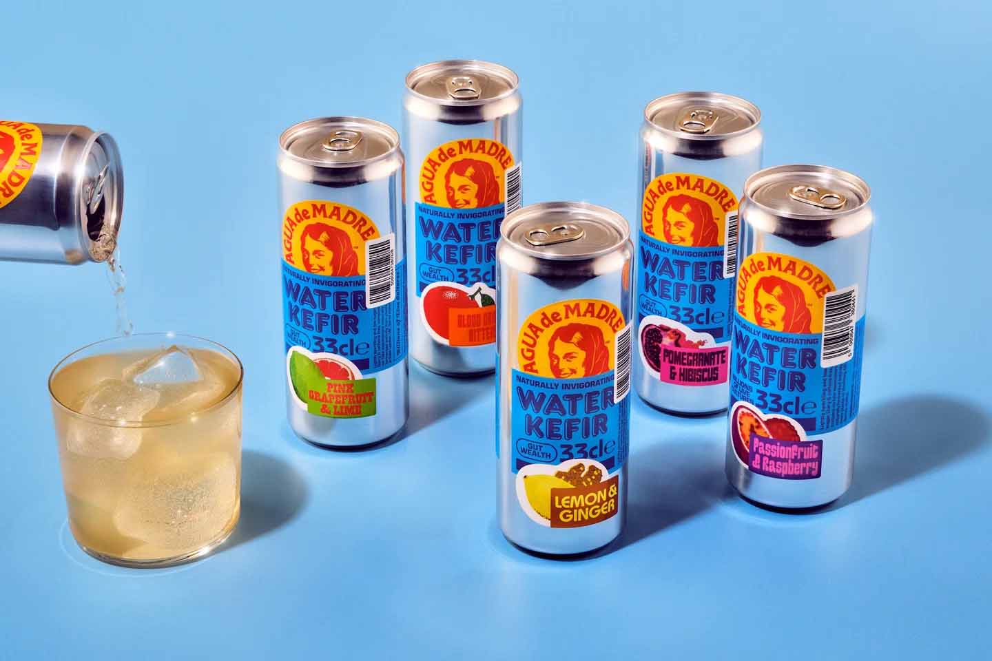 品牌升級設計主要有兩個目標。首先,我們希望讓大家了解Agua de Madre背后俏皮美學的靈感來源,即“品味與尊重Madre精神的傳達”。通過將鮮艷的色彩與懷舊字體相結合,我們能夠巧妙地暗示出飲料的活潑口感。同時,引入坦率重疊的貼紙設計,借鑒兒童貼紙書的形式(以及人們在使用貼紙書時所獲得的快樂),進一步強化了品牌的趣味性。雖然水開菲爾的含糖量低且味道細膩,但它本身是一種具有蘇打水風格的飲品。為了突出這一點,設計師特意采用了熟悉而俏皮的字體以及明亮、充滿活力的色彩,使Agua de Madre在眾多酒精和康普茶類競爭產品中脫穎而出,彰顯其獨特的品牌魅力。