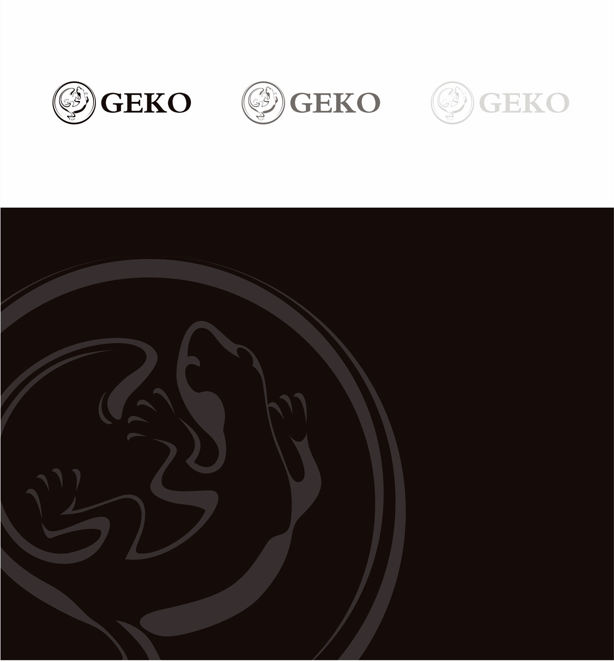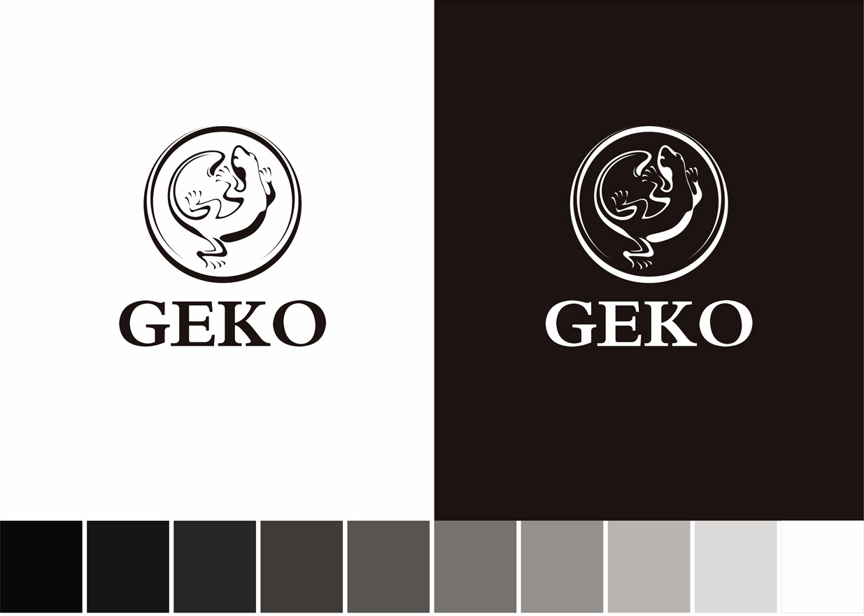 GEKO墻紙為大自然壁紙新品牌,GEKO意大利語,中文意思:壁虎,瑞士純進口的、經典的、精品墻紙時尚的,該品牌以壁虎的拉丁語"GEKO"突出產品特征,因此標識以壁虎為原型,進行藝術化提煉,蟠曲而臥、蓄勢待發,整體結構變化豐富,符號化強。