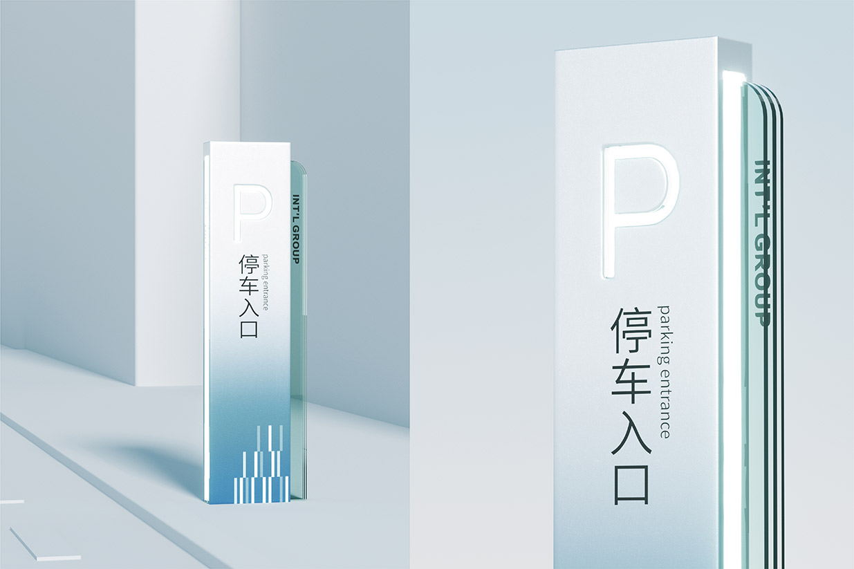 選擇藍色作為品牌主色調,藍色在色彩心理學中常常與智慧、科技、冷靜以及可靠性等特質緊密相連。在醫(yī)藥行業(yè),這些特質尤為重要,因為它們能夠傳遞出英特集團在醫(yī)藥科技研發(fā)、創(chuàng)新應用以及精準服務方面的專業(yè)形象。同時,縱向線段的設計元素巧妙地融入其中,這些線條象征著數據傳輸、信息流動以及科技發(fā)展的方向性。它們以簡潔而富有節(jié)奏感的排列方式,展現出英特集團在醫(yī)藥供應鏈管理、藥品信息追溯以及數字化醫(yī)療服務等方面所具備的高效、精準的科技實力,讓客戶直觀地感受到企業(yè)與前沿科技緊密相連的品牌形象。大量使用玻璃材質是本次品牌形象升級的另一大亮點。玻璃以其透明、光滑、質感高級的特性,完美地詮釋了現代感。