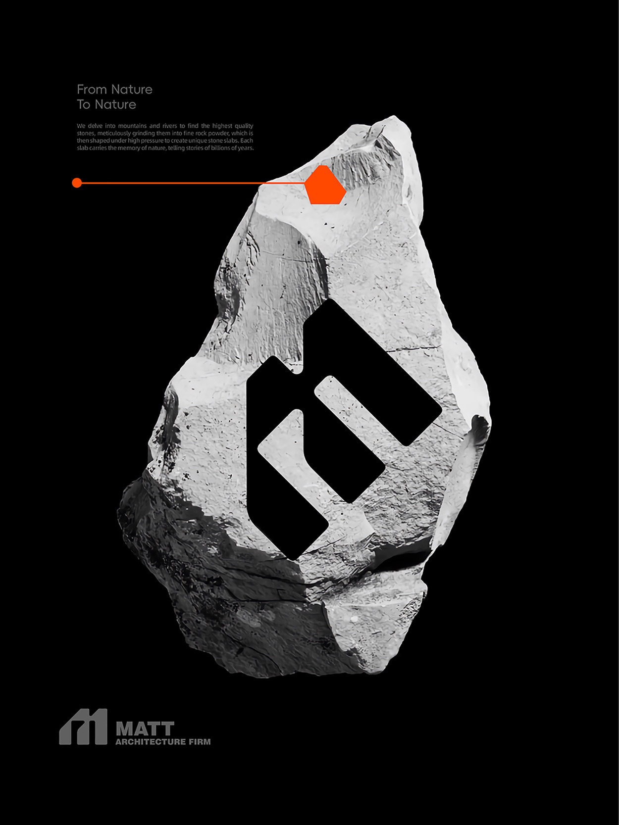 MATT強(qiáng)調(diào)材質(zhì)與空間的共生關(guān)系,通過巖板的自然質(zhì)感與科技工藝,傳遞“延續(xù)自然本質(zhì),賦能未來空間”的價(jià)值主張。品牌以黑色為基調(diào),象征巖層的深邃與永恒;以橙色為點(diǎn)綴,體現(xiàn)創(chuàng)新活力與對(duì)自然能量的致敬,傳遞沉穩(wěn)中突破、傳承中創(chuàng)新的品牌精神。
